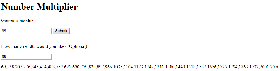 Array and function experimentation. Enter a number and the amount of results you would like.